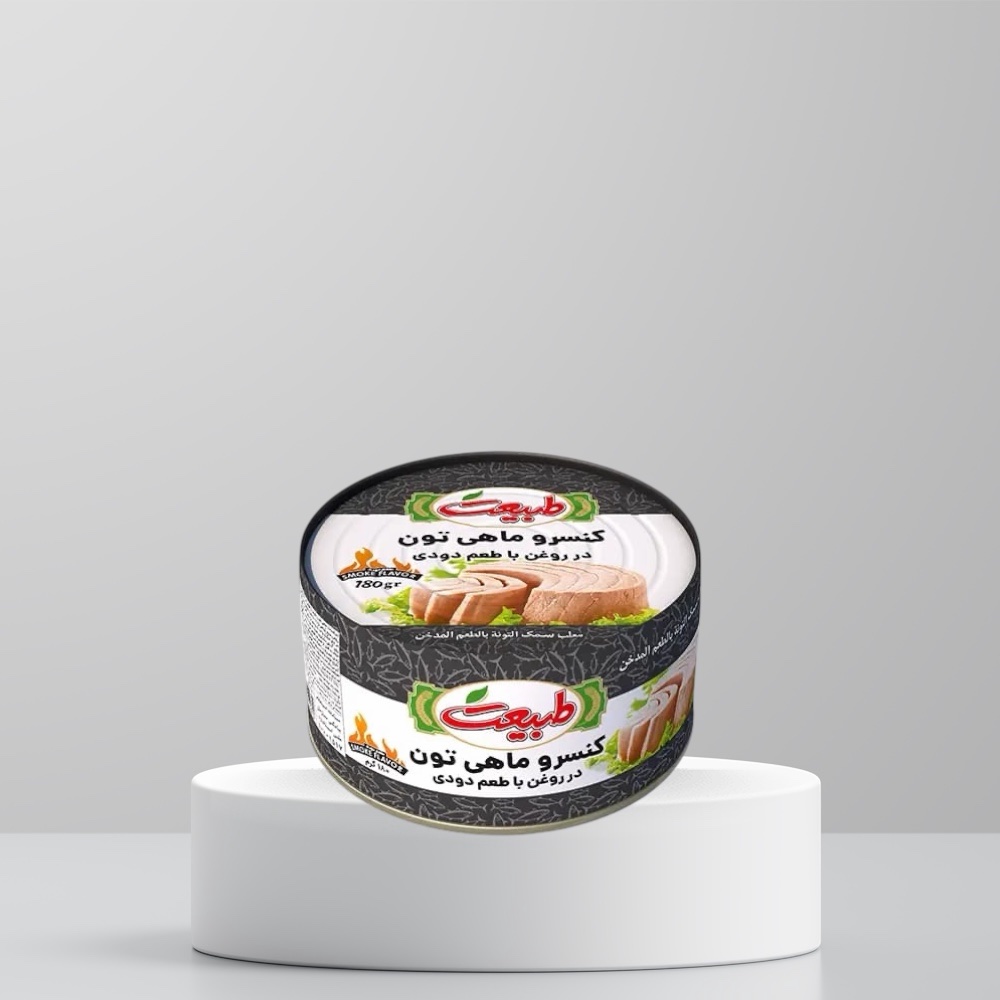 Tabiat canned smoked tuna fish in oil كنسرو ماهى تون در روغن با طعم دودى